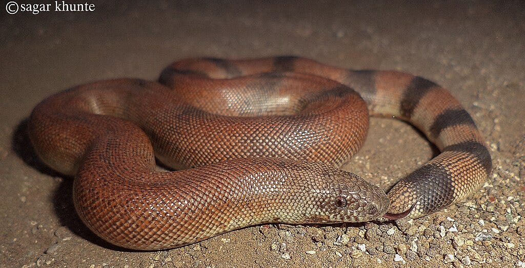The red sand boa is subject to a “rampant” illegal trade fueled by myth and superstition. Some communities in India believe that they will lead you to hidden treasure or that keeping one in your house will mean you become rich, according to reptile expert Nirmal Kulkarni.